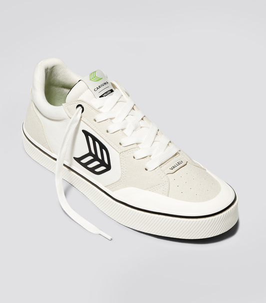 VALLELY PRO Vintage White Suede and Off-White Cordura Black Logo Sneaker VALLELY PRO